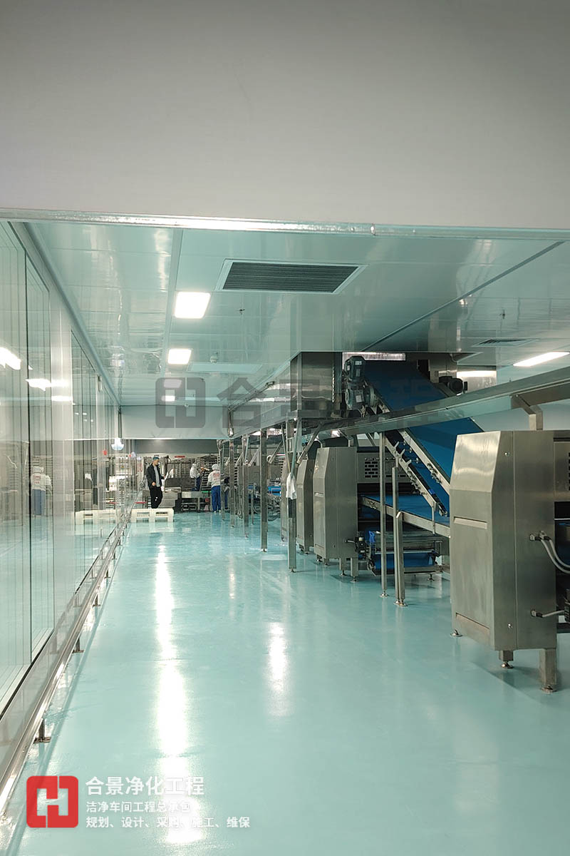 根據生產工藝特性,將食品廠凈化車間劃分為不同潔凈區域(如30萬級、10萬級、萬級)。通過壓差梯度實現氣流定向流動:清潔區與非清潔區保持≥10Pa正壓差;高風險操作區形成相對正壓核心區;物料傳遞口設置雙扉連鎖氣閘裝置;人員通道采用風淋室與緩沖間雙重隔離。