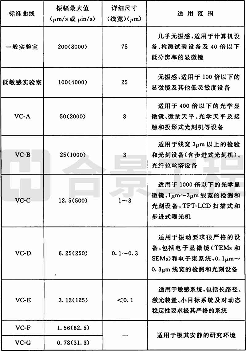 表A.0.2 精密設備、儀器容許振動標準曲線應用說明